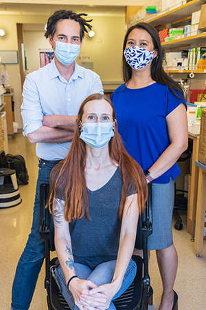 From left, Professor Stefan Materna, Professor Stephanie Woo, and, seated, researcher Jesselynn LaBelle.